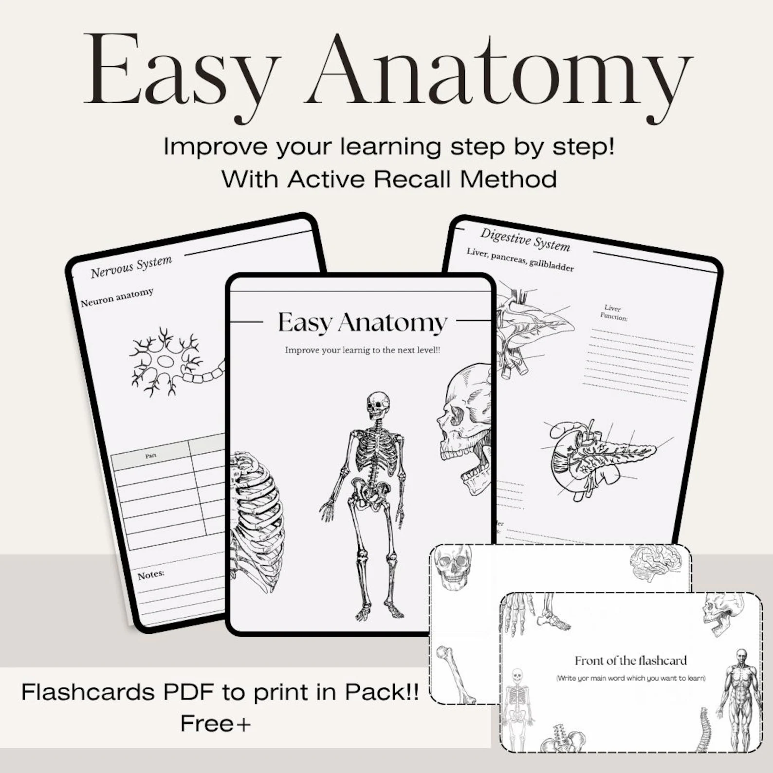ake your anatomy and physiology revision to the next level with this Anatomy Digital Template “Easy Anatomy” – a thoughtfully designed anatomy study guide and blank flashcard set to help you master the human body through active learning.