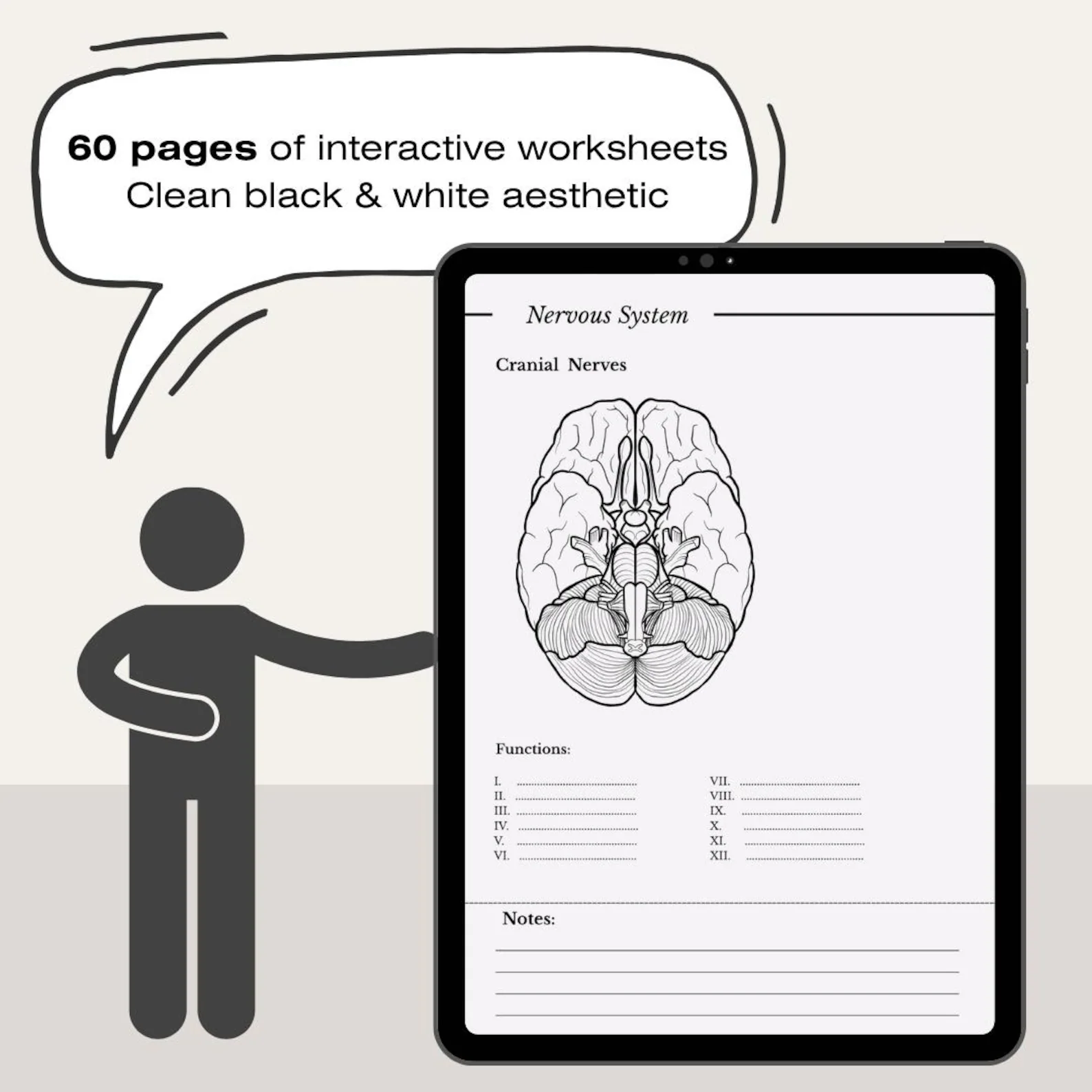 This set includes 60 printable pages filled with anatomy templates, diagrams to label, and tables to complete – perfect for visual learners and students who retain information by engaging with it.