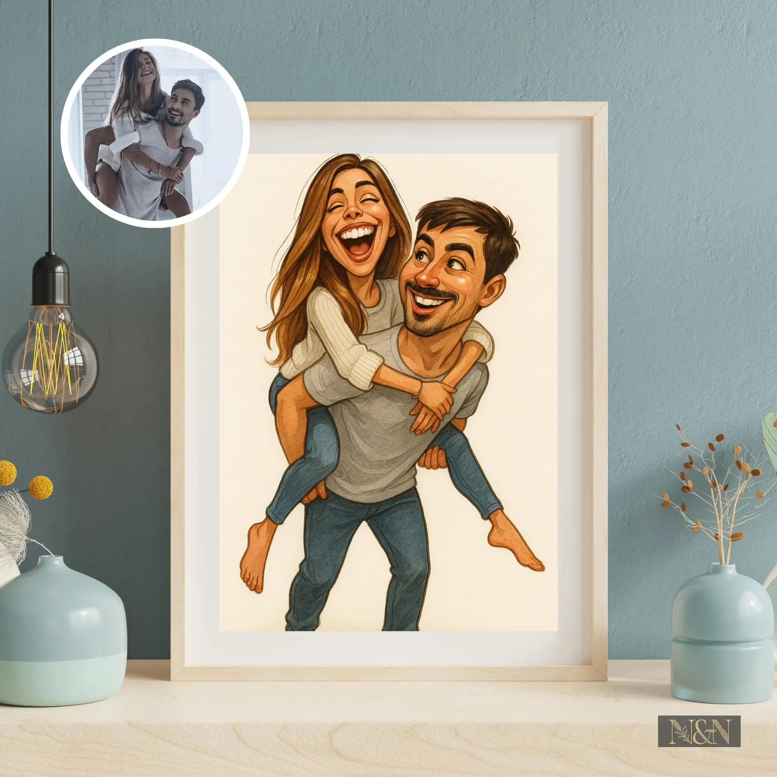 At Nook&Nest, we create Custom Caricature Portraits from your favorite photos — the perfect way to turn memories into art! Whether it’s a gift for Birthdays, Anniversaries, Weddings, Valentine’s Day, Mother’s Day, Father’s Day, Halloween, Christmas, or just because — this digital caricature will be a hit!