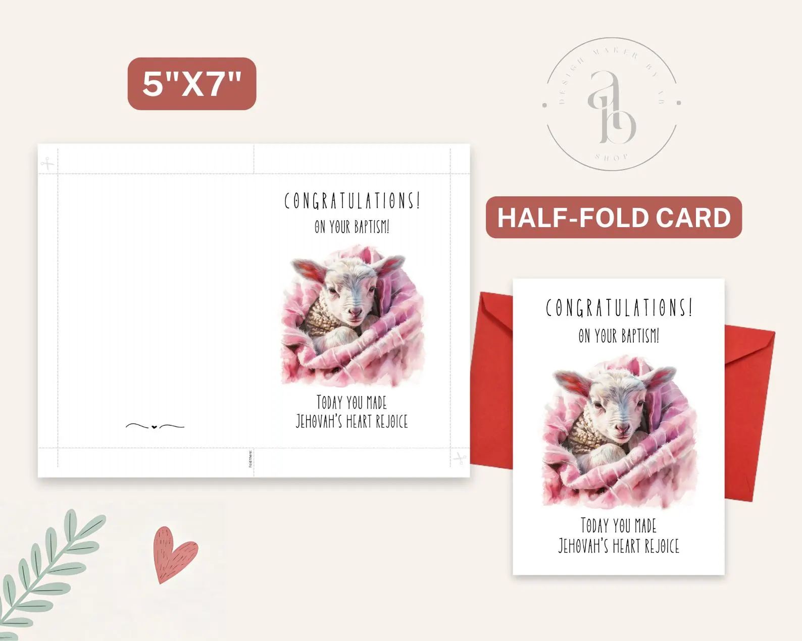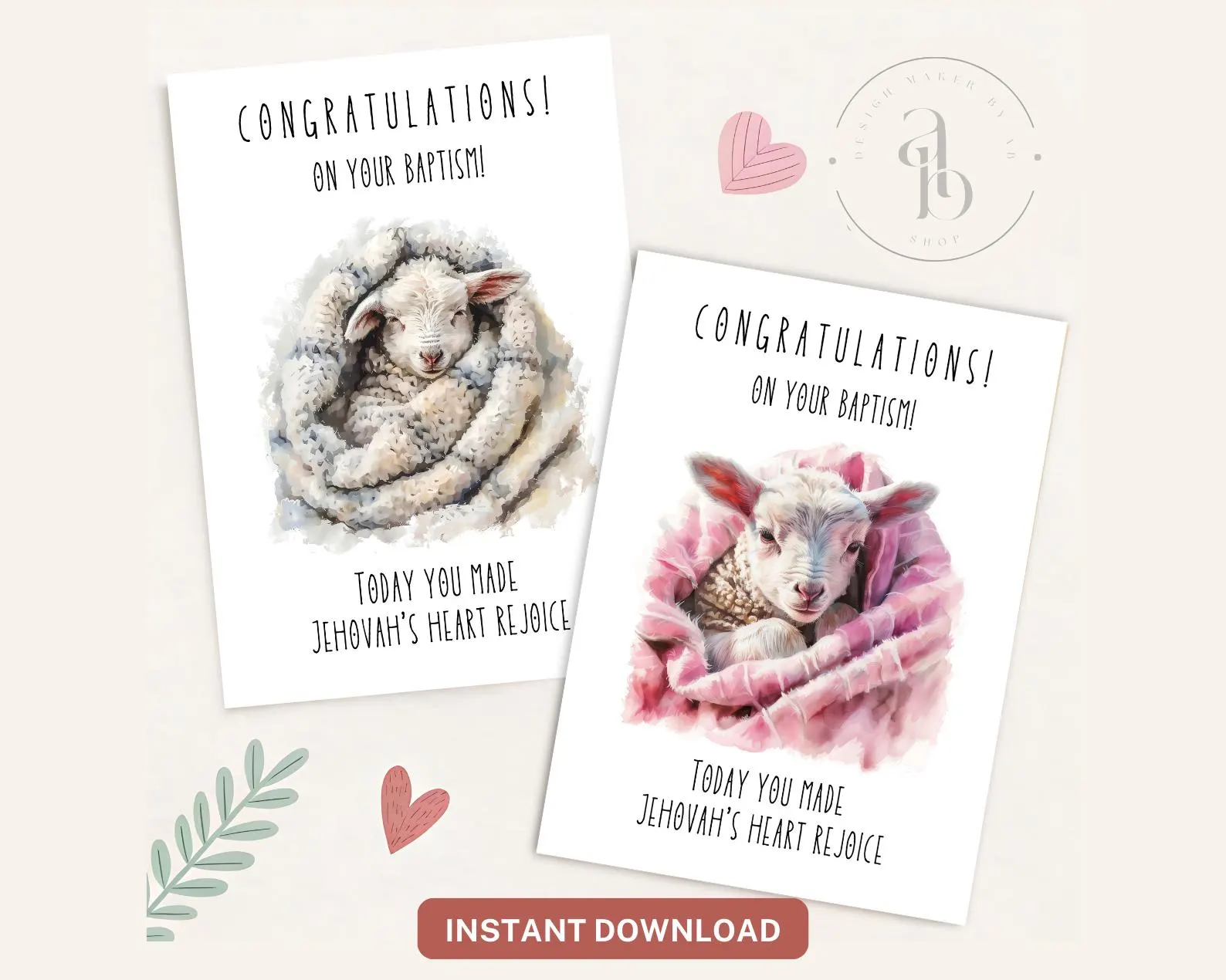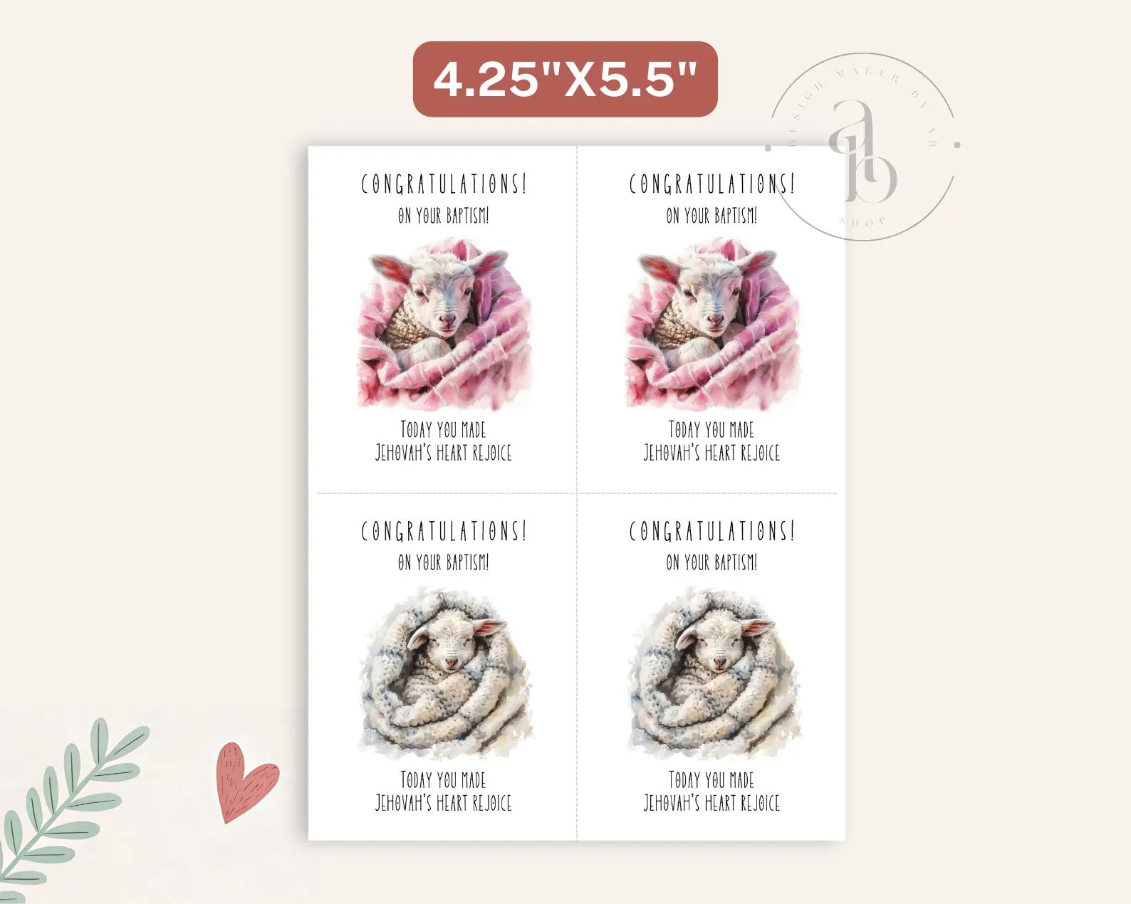 Congratulate a newly baptized brother or sister with this easy-to-use, instant download printable card, featuring a beautiful design with an adorable sheep illustration.